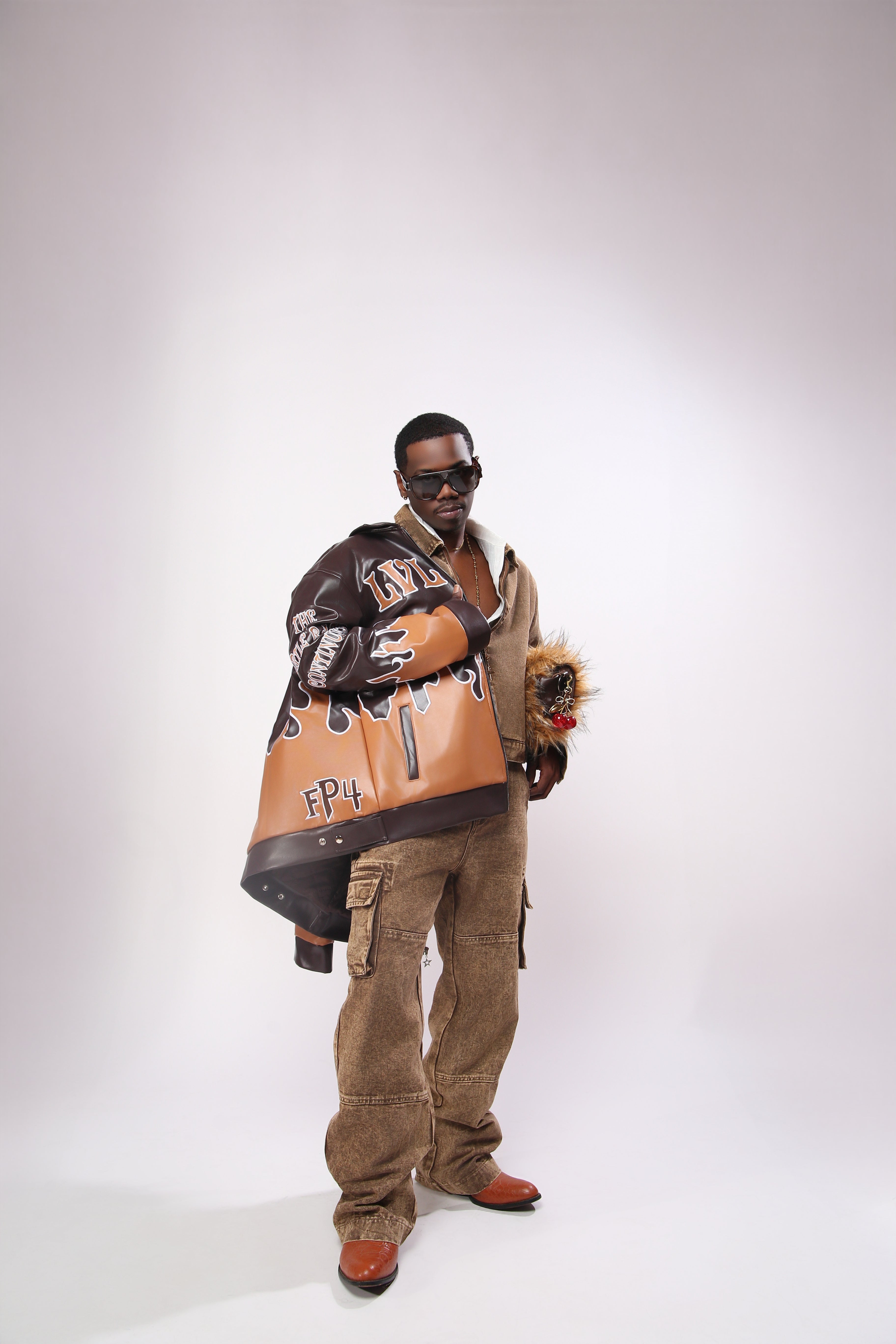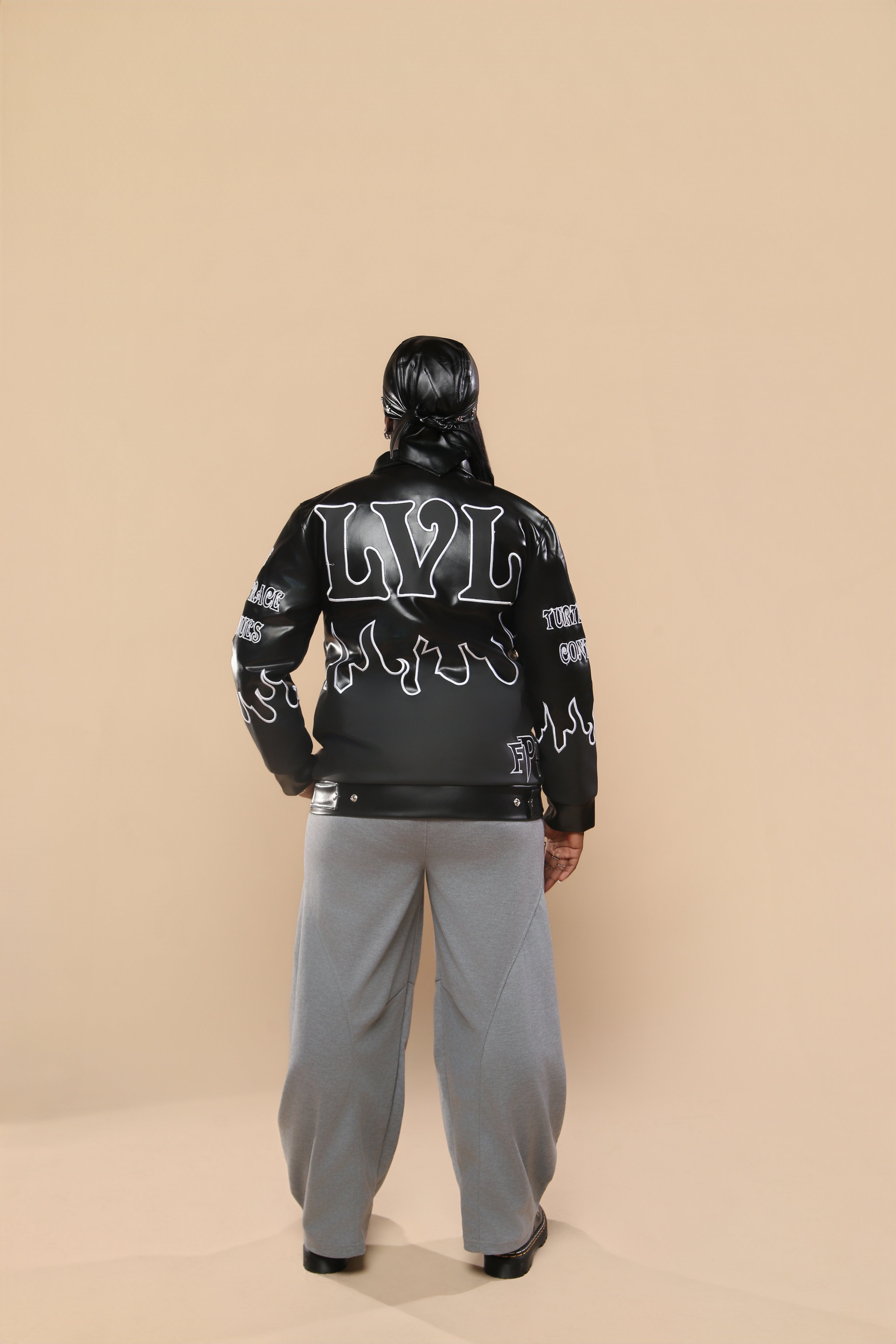 Premium leather outer with a heavyweight feel. Smooth interior lining for all day comfort. Strong stitching throughout for long term wear. Clean panel construction with bold LVLVSH drip graphics across the chest, sleeves, and back. Each colorway carries its own energy while staying rooted in the same message. Keep moving.